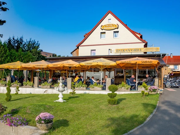 We welcome you in our restaurant Balkan Grill and in the Rehberg-Stübchen and invite you in the warm seasons to use our beautiful winter garden or our outdoor terrace.