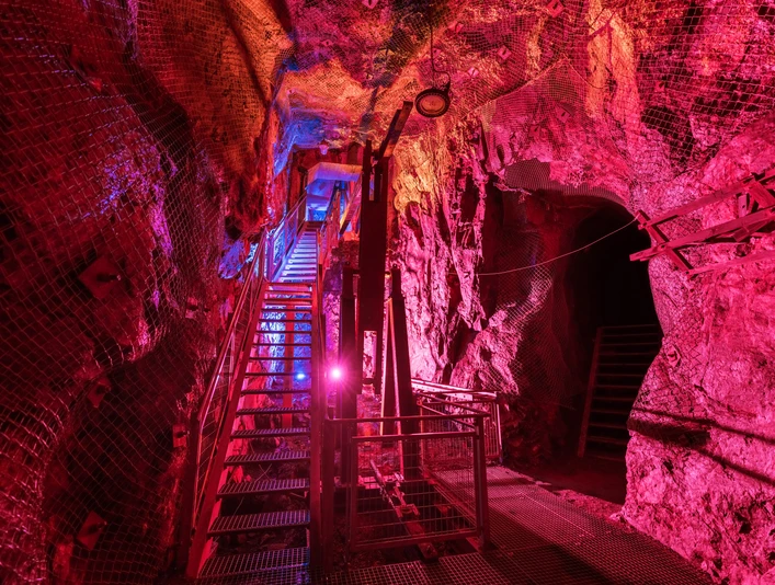 Celebration with food, drinks and music in and at the Samson mine. Atmospheric evening in the museum mine illuminated with 500 candles.
