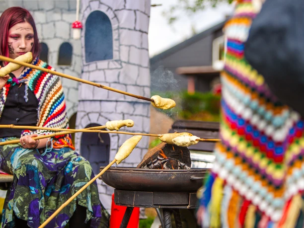 the broom, pot knocking, hellish stories, puppet show at the witches' castle, witches' drink and devil's brew.