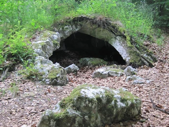 The start and end point for this easy, approximately 7 km long hike is the parking lot at Friedwald between Bad Sachsa and Walkenried. From here, the route crosses the country road L 604 on the hiking trail marked 32R, passing the beautifully peaceful fishing ponds at Blumenberg. The path then leads to the ruins of Sachsenburg. The exact year of construction of Sachsenburg is not documented, only a first mention in the Hersfeld Annals in 1073. The castle could not have lasted long, at most about 10 years, because it was already demolished in 1074. Starting from Sachsenburg, follow trail 32R further and cross the railway tracks of the Deutsche Bahn – Nordhausen to Göttingen line – at the level crossing created specifically for hikers. Along the Zwergenlöcher, the path gently climbs to the Sachsenstein hut. Here you have a very nice view over the Harz foreland and the Neuhof district. This is also where the first HWN stamp of the current route, with number 166, can be found. From the Sachsenstein hut, continue downhill past the Loren monument and at the community house turn right towards the Historical Gypsum Kiln, the second stamp station of the route with number 192. From now on, the path is almost entirely flat heading towards Bad Sachsa through the Wiesengrund, partly on the Neuhof circular trail number 7, and past the train station. From there, the way back to the starting point goes along the fields and is easy to walk.