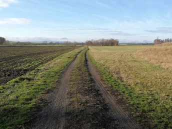 nach einigen Kilometern rechts auf einen Plattenweg einbiegen um nach Derenburg zu gelangen