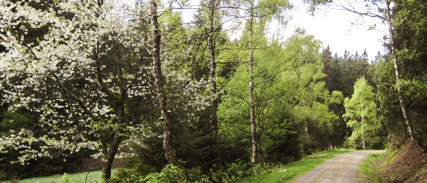 Es geht nun noch einmal leicht bergab bis zur "Willibald-Ihmann-Köte" (Schutzhütte). Dort biegen wir links ab und folgen dem Fahrweg aufwärts auf direktm Weg zurück zum Ausgangspunkt an der Grillhütte am Bechlerstein-Denkmal.