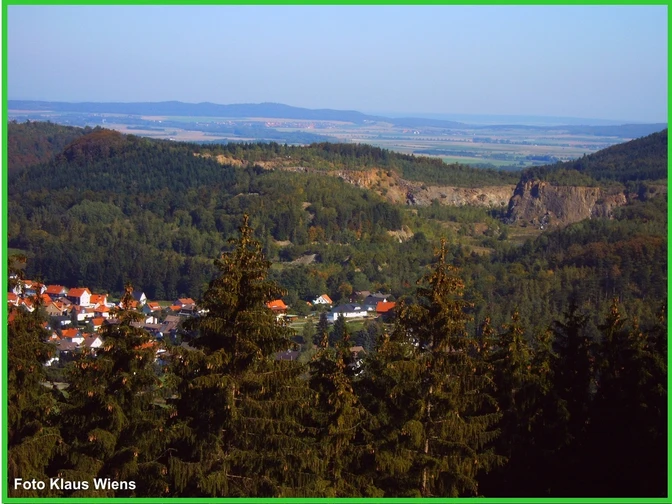 Schöne Wegstrecke mit Aussicht auf die Harzberge dem Ort Wolfshagen und seinem Diabas - Steinbruch. Vereinsheim des Harzklub ZwgV. Wolfshagen wird passiert. Geöffnet für Wandergruppen auf Anfrage und teils sonntags bei schönem Wetter. Anfragen jeweils bei der Tourist- Info, Wolfshagen im Harz. Tel. 05326-4088