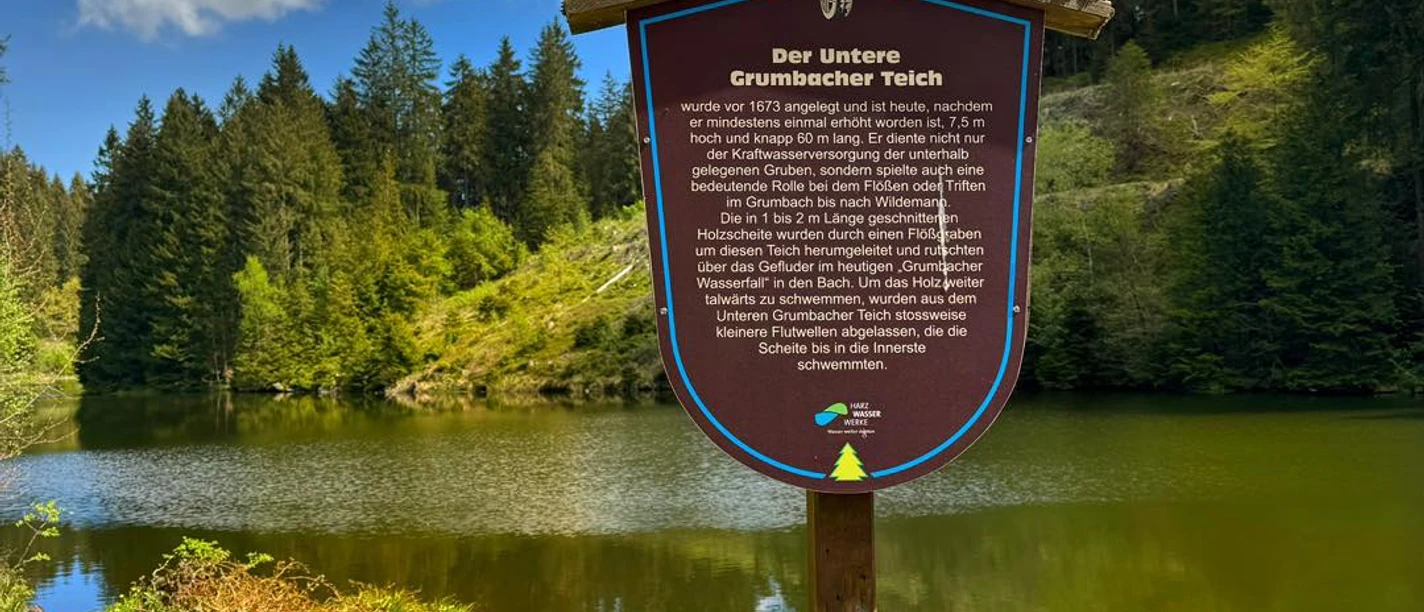 Ausgangspunkt der Rundwanderung ist der Parkplatz am Ortsrand von Wildemann an der Glow Golf Anlage. Der Weg führt über die Alle der Jahresbäume zunächst am Wasserfall entlang in Richtung Unterer Grumbacher Teich. Entlang des Weges informieren Tafeln über historische Relikte wie einen alten Kohlemeiler, hölzerne Wasserleitungen und regionale Bräuche.