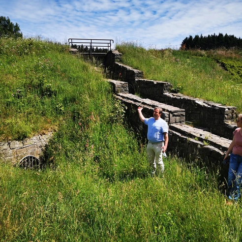Am Ende verschwindet der Graben unter der Erde. Dort geht es direkt ins Zellerfelder Bergbaurevier. Vor hier gehen Sie runter ins Spiegeltal und am Fluss entlang wieder hinauf.